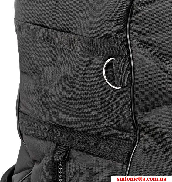 Чехол для контрабаса из прочного синтетического материала. Толщина уплотнителя - 15мм. Карман для нот, карман для аксессуаров, отделение для смычка, ручка, 2 лямки для ношения на спине (рюкзак).