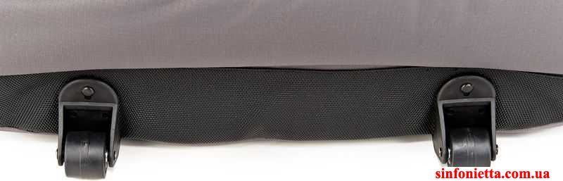 Чехол для виолончели с колесиками - для удобства перемещения инструмента в аэропорту, вокзале, городе и т.п. Толщина уплотнителя - 24 мм, дополнительные ручки, защитная вставка на уровне подставки, а также изнутри, отделение для смычка, лямки для рюкзачной носки.