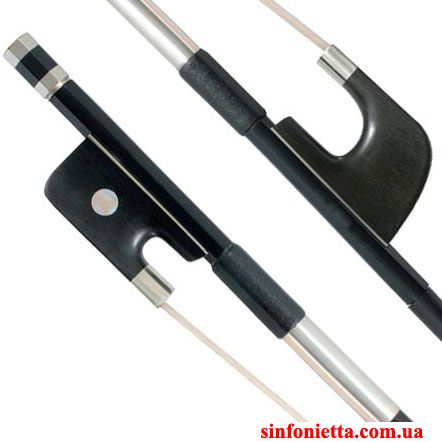 Смычок для контрабаса из Карбона KB8029F. Французская модель. Удобный в руке, с хорошим откликом как фернамбуковый смычок, нечувствителен к климатическим изменениям. Колодка из черного дерева, монгольский конский волос, круглая трость.