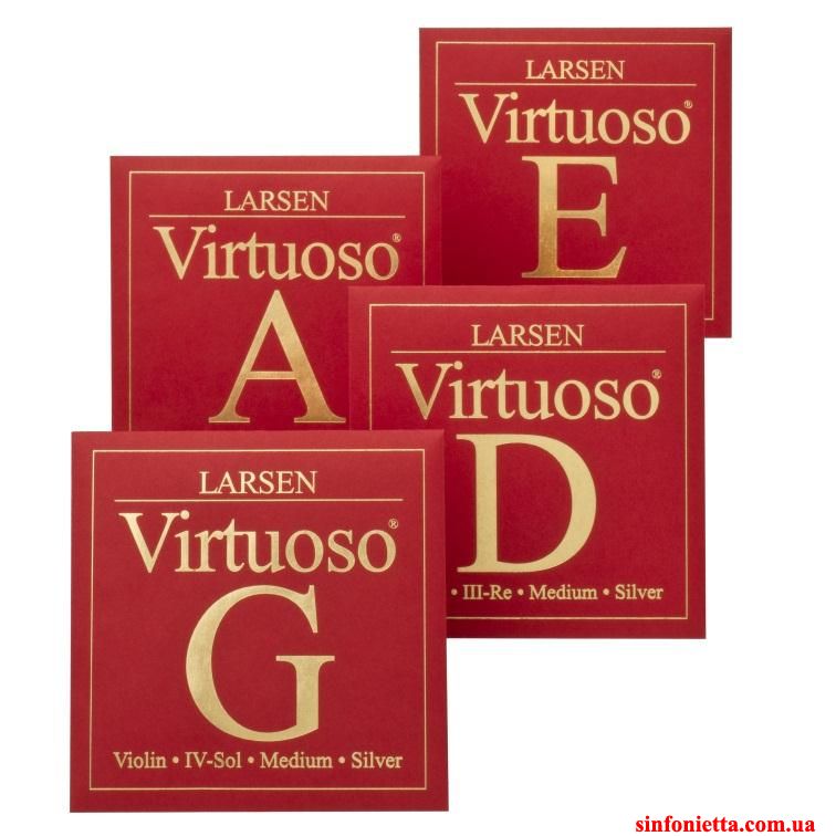 Комплект струн для скрипки Larsen Virtuoso. Струна Ми - карбоновая сталь, струны Ля, Ре и Соль - синтетическая многонитевая основа изготовленная по новой революционной технологии, обмотка из алюминия и серебра. Сохраняя звуковые характеристики, присущие струнам Ларсен, данная марка струн имеет меньшее "давление" на инструмент. Звук создаваемый дынными струнами характеризуется как теплый, сильный с значительной полетностью/направленностью звук.