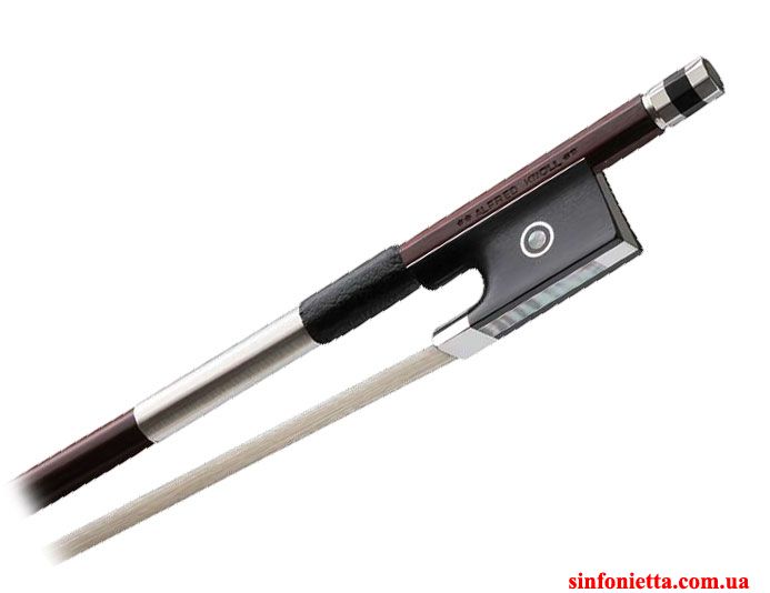 Высококачественный мастеровой смычок Alfred Knoll Vn310 для скрипки. Трость - круглая, отборного качества фернамбук, колодка из лучшего черного дерева с глаpком Paris, головка винта из 3х частей, серебро.
