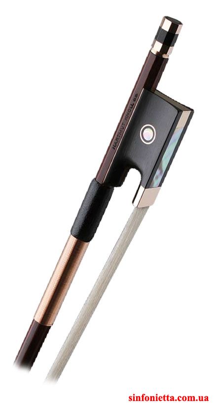 Высококачественный мастеровой смычок Hartmut Knoll Silver для скрипки - тонкая работа мастера. Трость - круглая, фернамбук, колодка из черного дерева с отделкой из золота, головка винта из 3х частей, золото + черное дерево.
