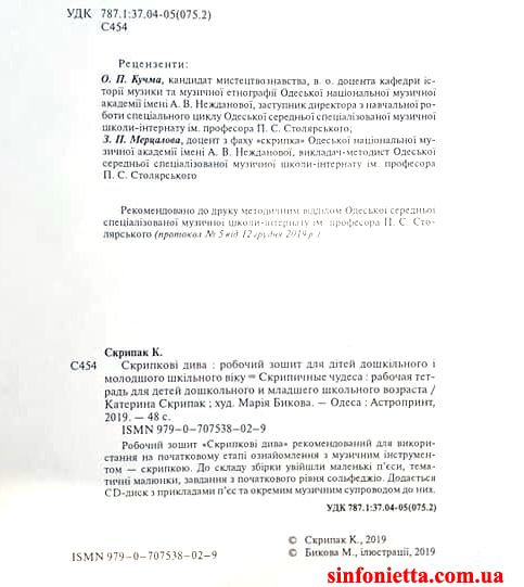 Сборник для маленьких скрипачей - "Скрипичные чудеса". К сборнику прилагается CD с записями пьес и аккомпанемента к ним. Издание будет интересным и практичным для ежедневной работы с начинающими скрипачами (дошкольников и младших школьников). Применимо для курсов дистанционного обучения.