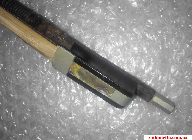 б/у Смычок для виолончели 4/4 - можно использовать на запчасти - колодка, трость, фрагменты трости для ремонта. Винт заблокирован в колодке. В месте касания винта трости имеется трещинка (видно на фото). Сильная пружина трости.