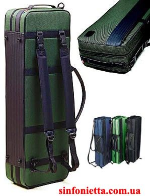 Снаружи с покрытием из водостойкой ткани "Cordura 2000 denier" с усиливающими вставками из PVC. Внутри изготовлен из высококачественного пенополиуретана высокой плотности. Отделение для инструмента точно повторяет контуры скрипки, защищает от температурных перепадов, колебаний.