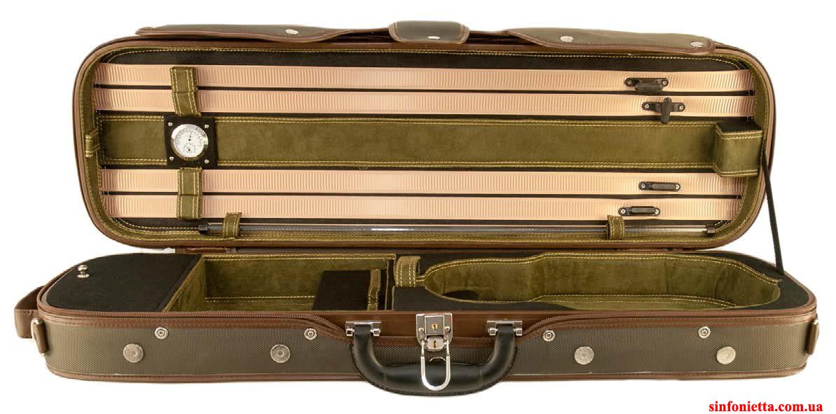 Современный скрипичный футляр 802VN Oblong - легкий прочный футляр с основой из дерева и твердой синтетической пены, теплоизоляция, синтетическое водоотталкивающие покрытием снаружи (оливковый цвет).