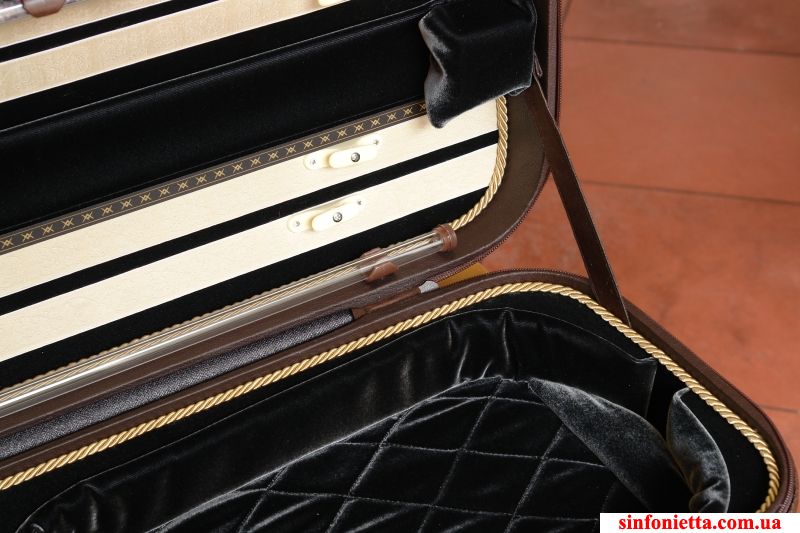Футляр для скрипки MUSAFIA Luxury Ultralight - с усиленным каркасом, в классическом элегантном стиле. Изготовлен из итальянских материалов высочайшего качества. Супер-компактный, ультра-легкий дизайн для тех, кто в пути. Скрипка размещается в футляре таким образом, что она находится в центральном отделении с большим открытым пространством с областью вокруг шейки и головы инструмента (где находится отделение для скрипичного мостика). Это обеспечивает максимальную защиту для инструмента. Отделение для аксессуаров в закрытом отсеке. Новый дизайн обеспечивающий максимальную легкость для данного футляра.